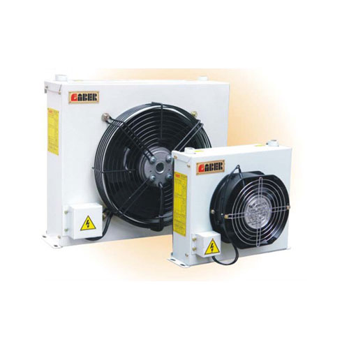油熱交換器利用液壓油(液)與周圍環(huán)境空間的溫差,采用先進的同步分層流動換熱技術(shù),通過風機強制循環(huán),將流動的液壓油之熱量排放到大氣中去,可有效控制油箱中的油溫。