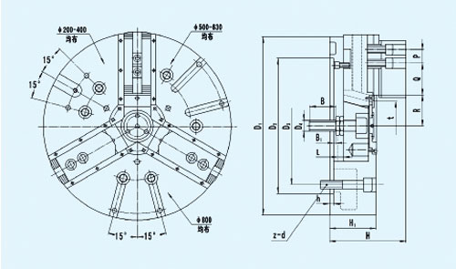 ☆是立式車(chē)床配套的專(zhuān)用卡盤(pán),也可用于其它機(jī)床。