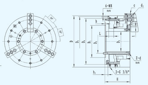 ☆前置式氣動夾緊,卡盤內(nèi)藏氣缸,機床前后可各配一臺卡盤。