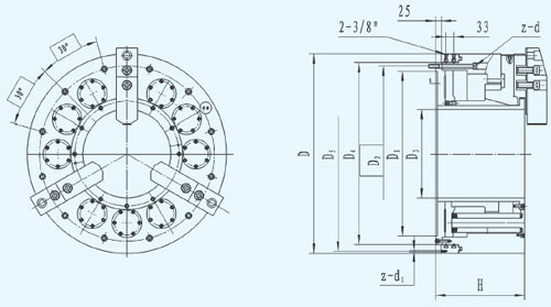 ☆前置式卡盤(pán)氣動(dòng)松開(kāi),碟簧夾緊,卡爪大行程。
