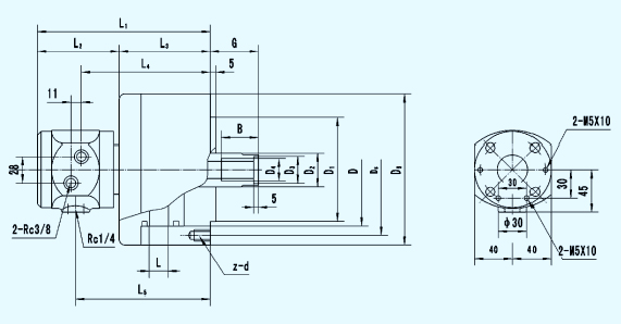 ☆不通孔高速回轉油缸。油缸采用優(yōu)質鋁合金材料,體積小,重量輕,轉速高,密封性好。