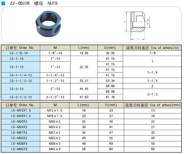 臥銑刀桿用螺母